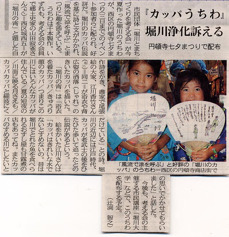 『カッパうちわ』 堀川浄化を訴える