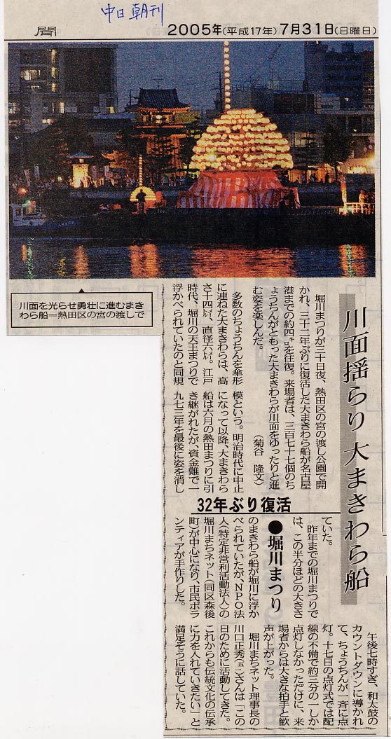 2005年8月1日 中日新聞 朝刊より