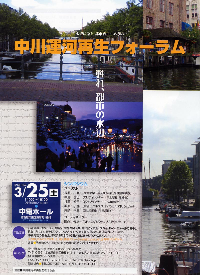 中川運河再生フォーラムが開催されます。