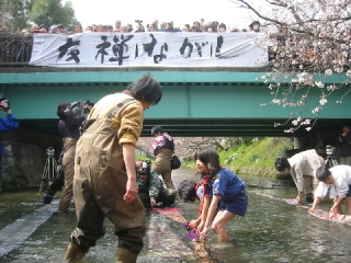 小学生らが友禅流し挑戦
