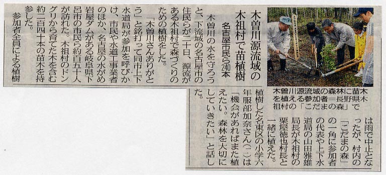 木曽川源流域の木祖村で苗植樹