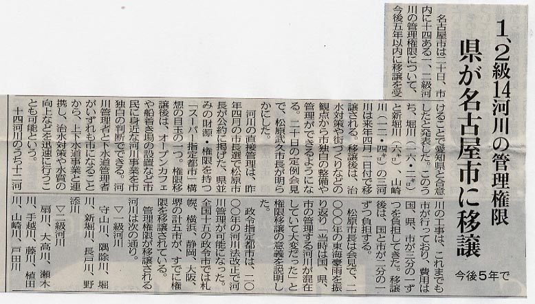 堀川の管理権限を愛知県が名古屋市に移譲