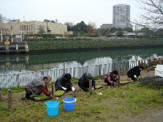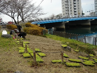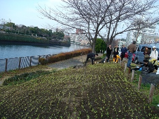 菜の花の苗5000株 堀川沿いに植える