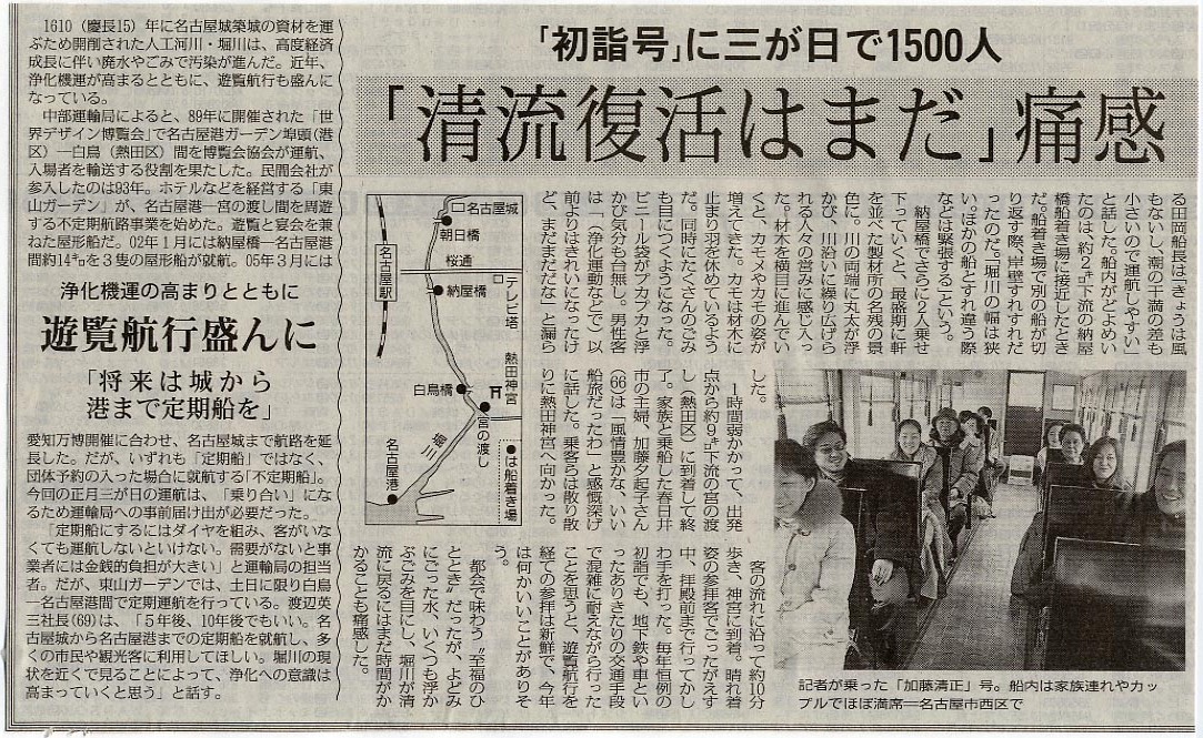 風情豊か 堀川伝って熱田さんへ 「初詣号」に3が日で1500人