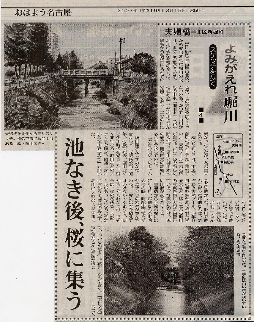 池なきあと桜に集う 夫婦橋=北区新堀町