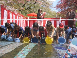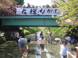 最後に子供達が金魚を放流して堀川に清流をアピ−ル