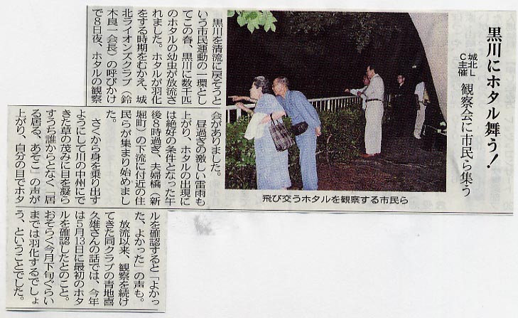 ゲンジボタルゆらゆら 放流の幼虫育った?