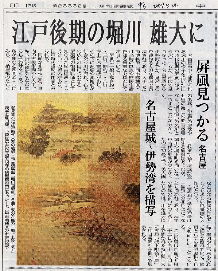 屏風見つかる 名古屋城〜伊勢湾を描写 (中日新聞より)