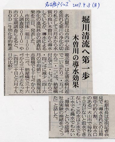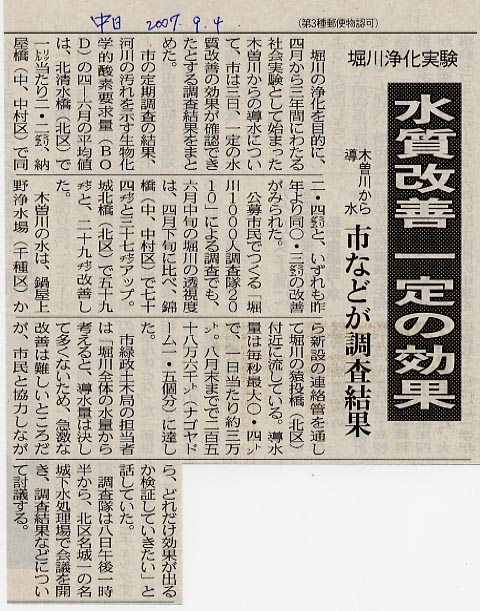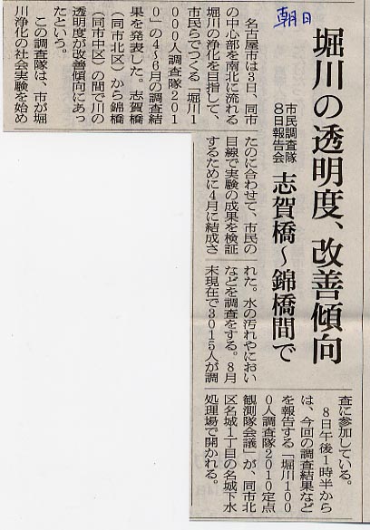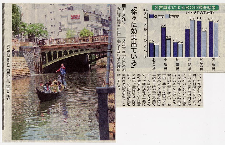 名古屋市と市民の堀川1000人調査隊が、一定の木曽川の導水効果確認
