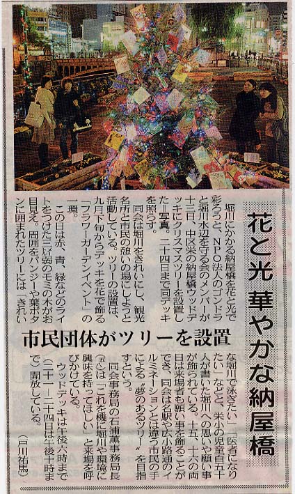 市民団体がツリーを設置 (中日新聞より)