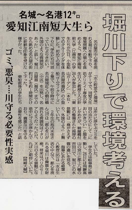 堀川下りで環境考える 名城〜名港12キロ