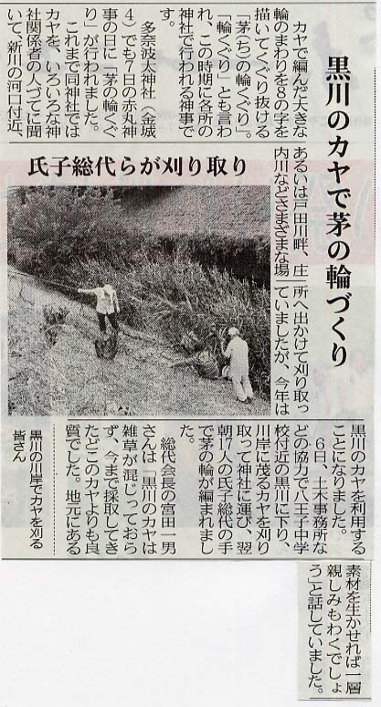 黒川のカヤで茅の輪づくり