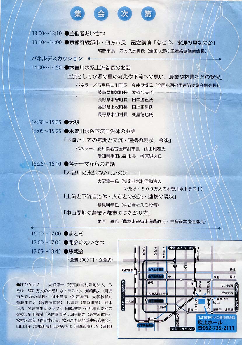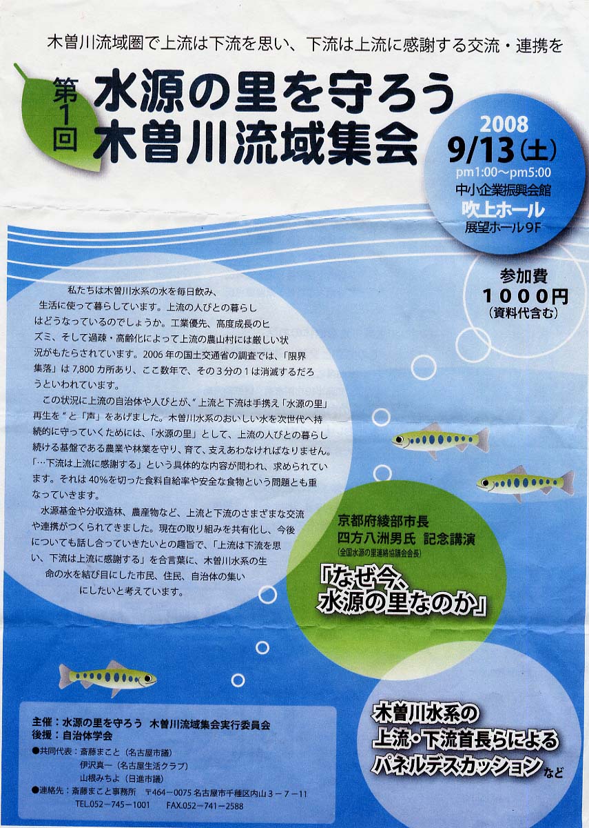 第1回 木曽川流域集会 9月13日(土) 吹上ホールで開催