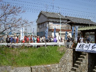 黒川樋門会場は、導水開始の歴史的瞬間に