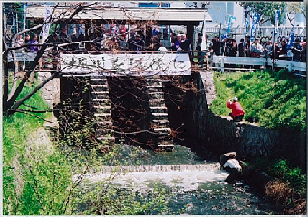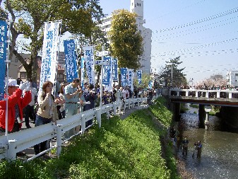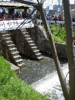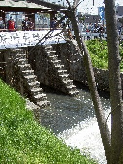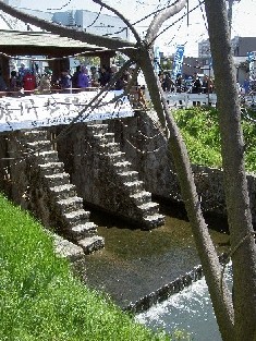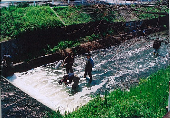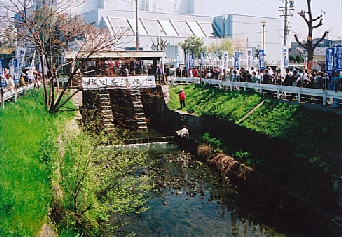 黒川樋門会場 導水開始の歴史的瞬間です。