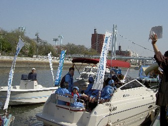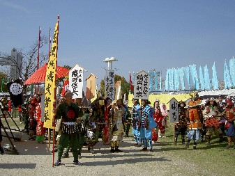 白鳥公園会場で、郷土歴史まつり、水上武者パレードがおこなわれ