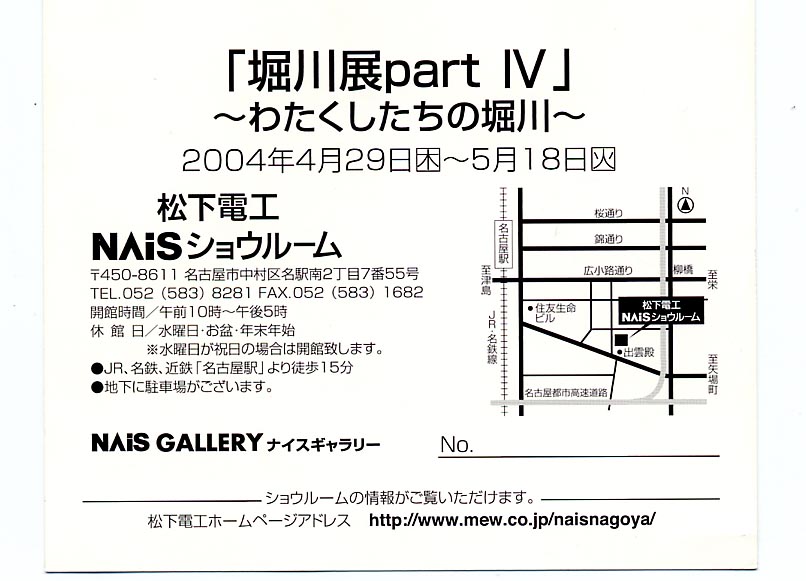 松下電工名古屋ギャラリー「堀川展」推進調査隊からのご案内です。