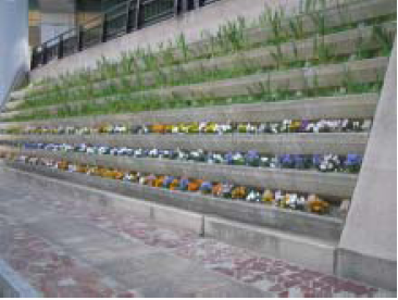 花壇には,パンジーが植えられており,人に見られることなくさびしく咲いていた。