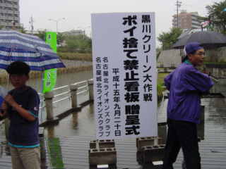 まず、名古屋北、名古屋城北2クラブによる、100個の「ポイ捨て禁止看板」を
