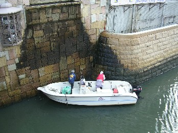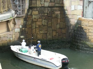 ヘドロで汚れた納屋橋付近の岸壁を洗浄する奉仕活動を実施しました。
