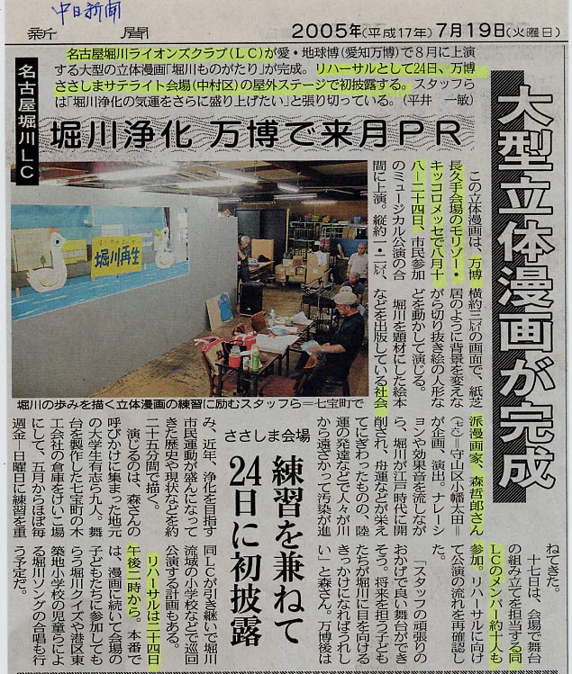 平成17年7月17日(日)、名古屋堀川ライオンズクラブが、8月18〜24日に