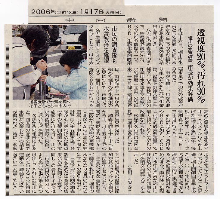 2006年1月16日(月)、名古屋堀川ライオンズクラブ 堀川1000人調査隊事務局は