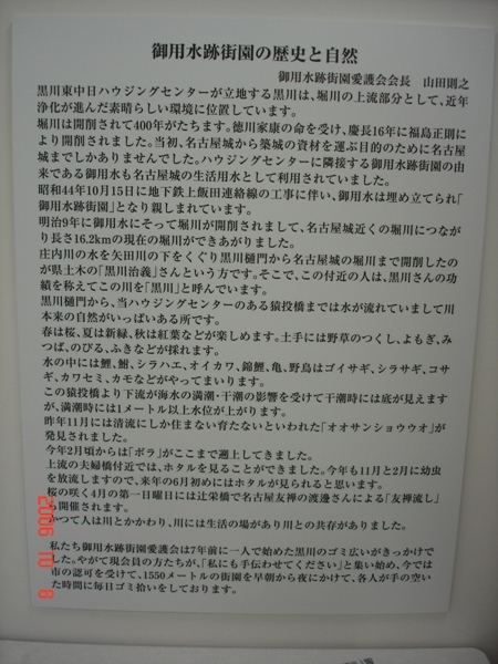 名古屋工業大学、御用水跡街園愛護会、堀川1000人調査隊などの皆さんが協力して、