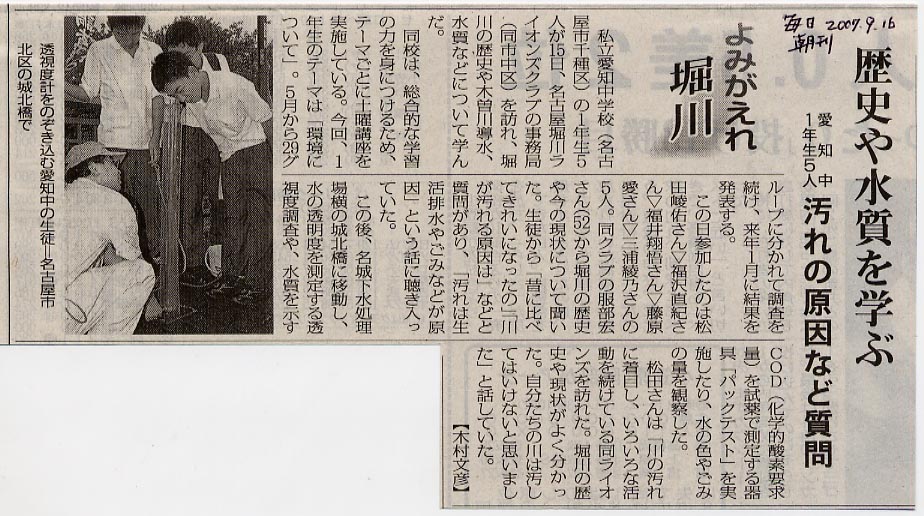 2007年9月15日(土)、千種区の愛知中学校の1年生5名が、環境学習のため