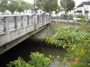 昔、ここまで堀川を最初にほったという朝日橋周辺、名城下水処理場やごみキャッチャーの