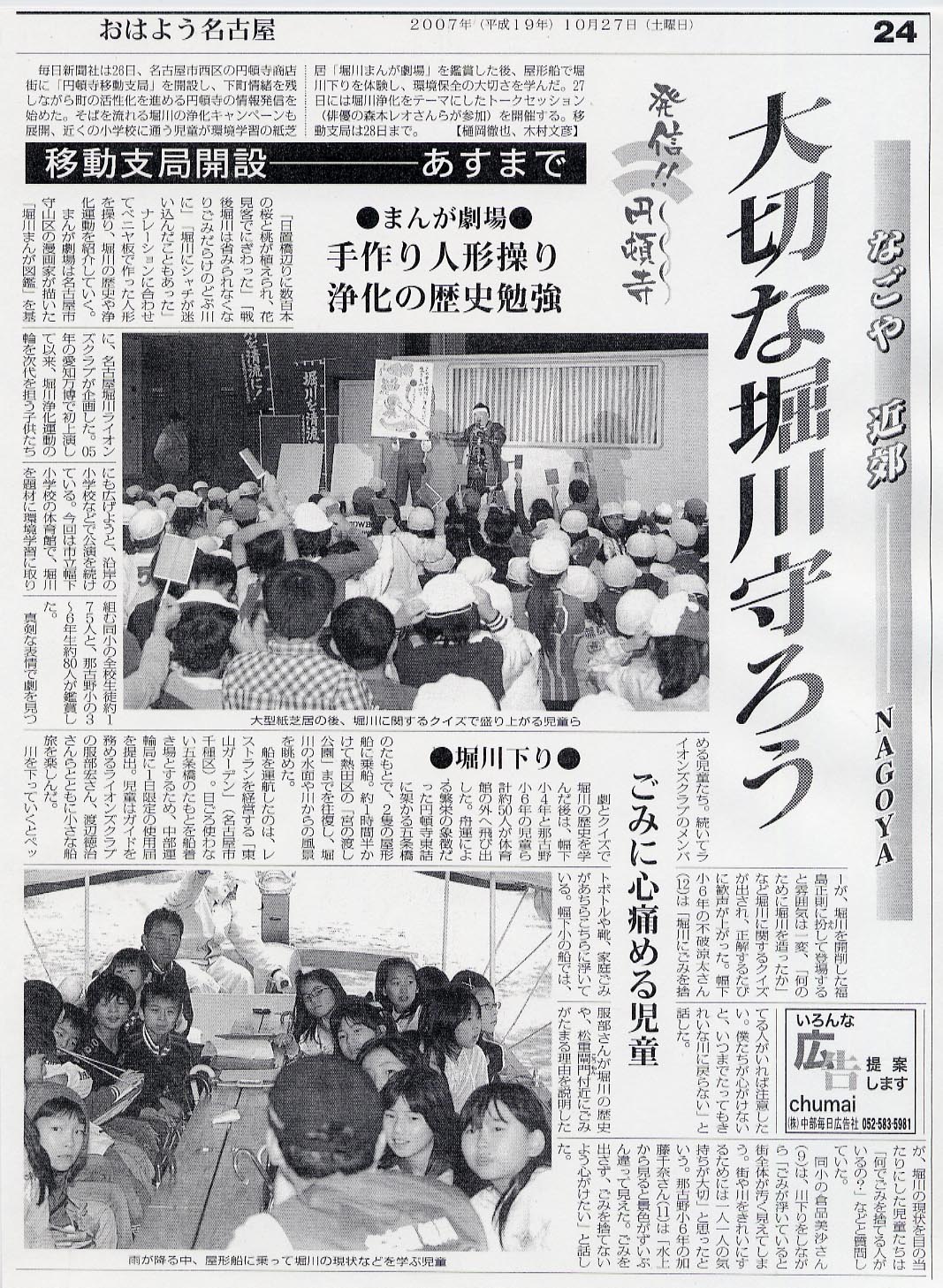 平成19年10月26日(金)、毎日新聞社主催の「円頓寺移動支局」の