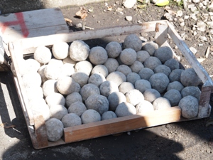清掃活動のあとは、浄化に効果のあるといわれる、EM団子をみんなで投げ込みました。