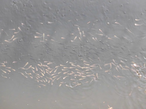 この日の堀川には、ボラの幼魚の群れがいっぱいいました。