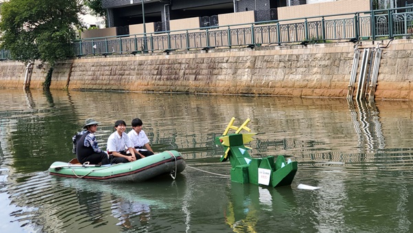 マイクロバブルを使ってヘドロを分解する、水上係留型ロボット
