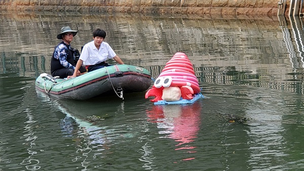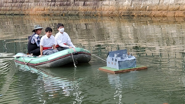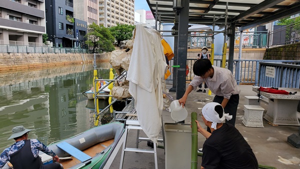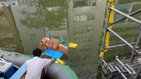ロボットを安全に水面におろす、足場もしっかり準備しました。