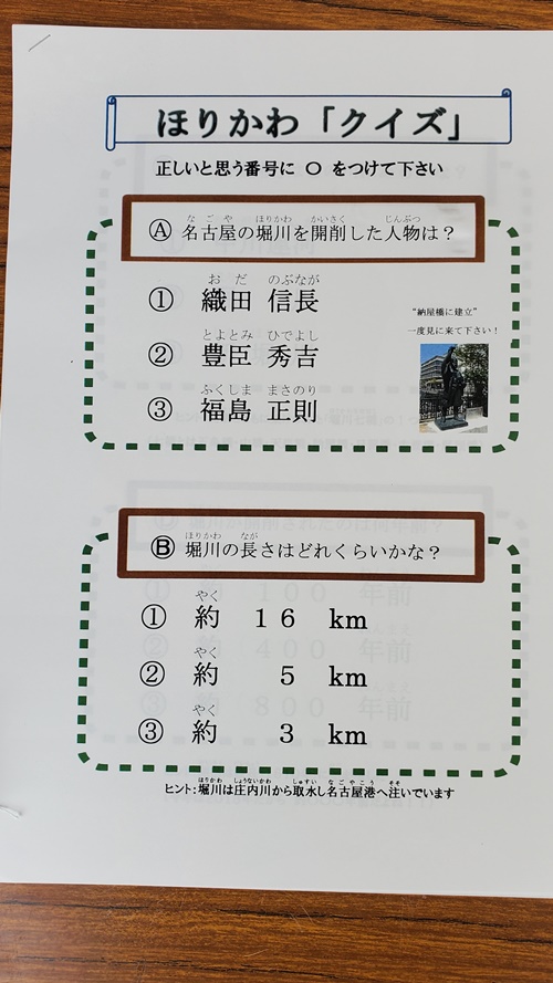 「堀川クイズ」を実施して、訪れる市民に楽しんでいただきました。