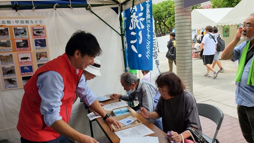 ブースでは、最近撮影した堀川の生き物の写真を展示したり