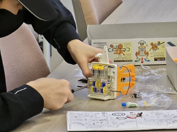 お姉さんたちのお手伝いで、親子でロボット作りに挑戦!