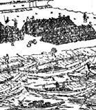 ここに尾張藩(おわりはん)の蔵(くら)がつくられたのは、名古屋城(なごやじょう)がつくられたのと同じころです。この場所につくったのは、堀川を使って船でたくさんの米を一度に運べるからです。