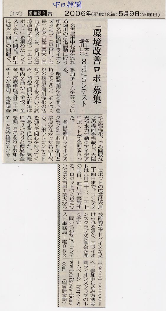 2006年5月9日(火) 中日新聞朝刊より