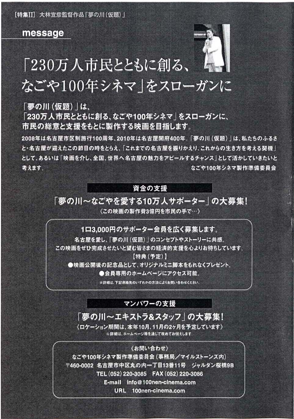 大林宣彦監督 「夢の川 (仮題)」 今秋クランクイン予定